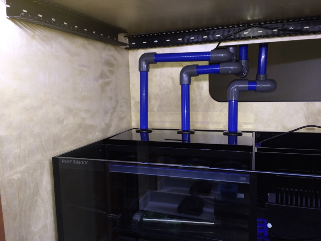Watching glue dry is like, watching paint dry. So while I was waiting for all the PVC glue to dry, I put up one of the T5 fixtures. I'm waiting on some more parts to hang the Radions, they should be here today. I think overkill might be an appropriate word when I have all four T5s up with the 2 Radions sandwiched between