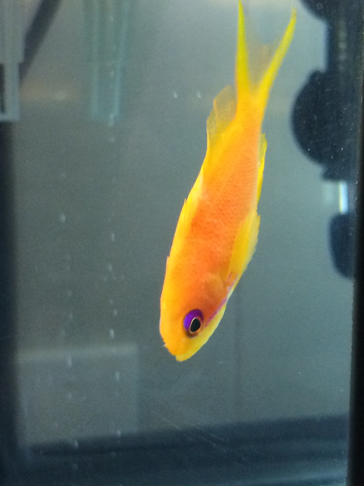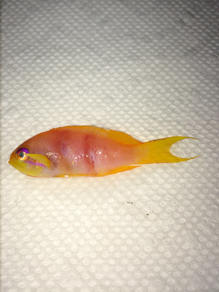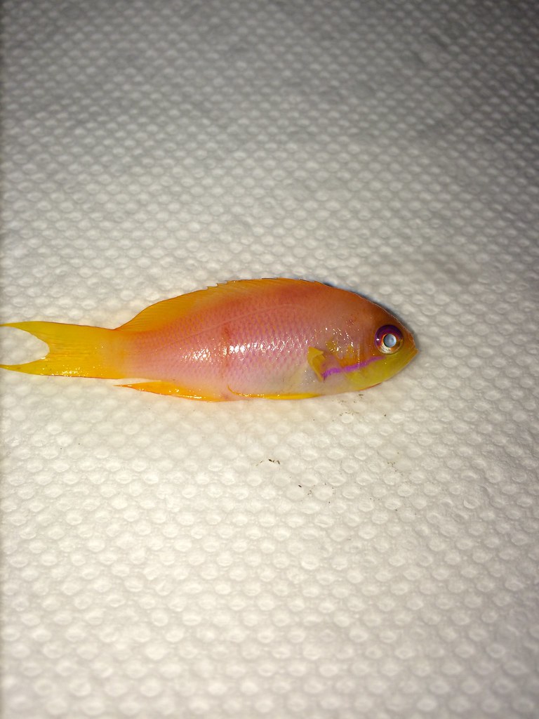 I picked up two Lyretail Anthias on Saturday and put them in my 20g long QT. The both looked fine at the LFS and were acclimated by salinity matching the QT with the bag water and floating for 30 minutes. pH was within 0.2 of the bag water so I released them into the tank.