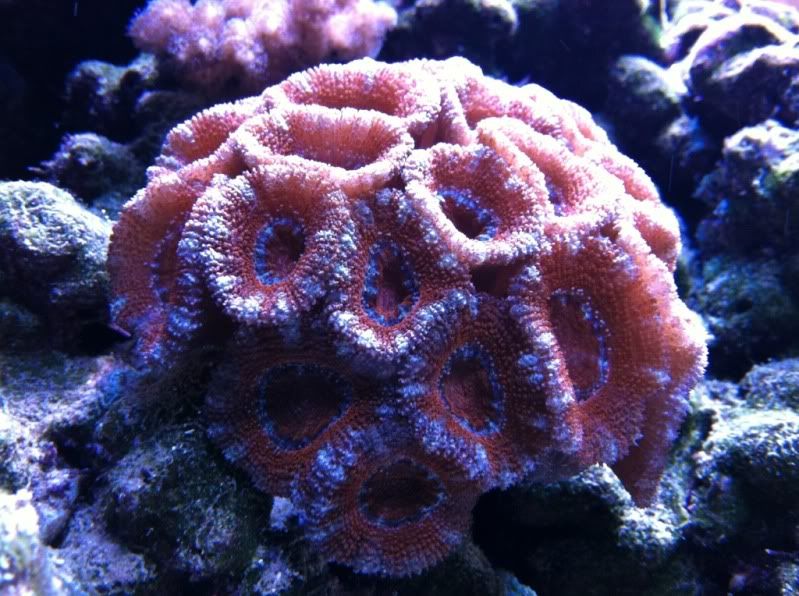 Montipora, red & purple flowerpots, yellow fiji leather, kenya tree, fish, doing well