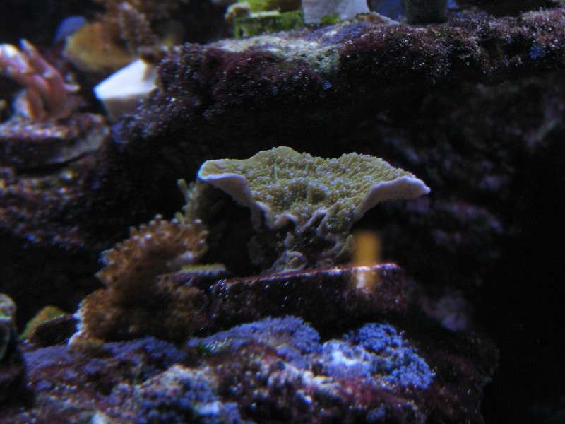 here is a blue polyp green cap frag that is coming along nicely. it survived my last tan calamity
