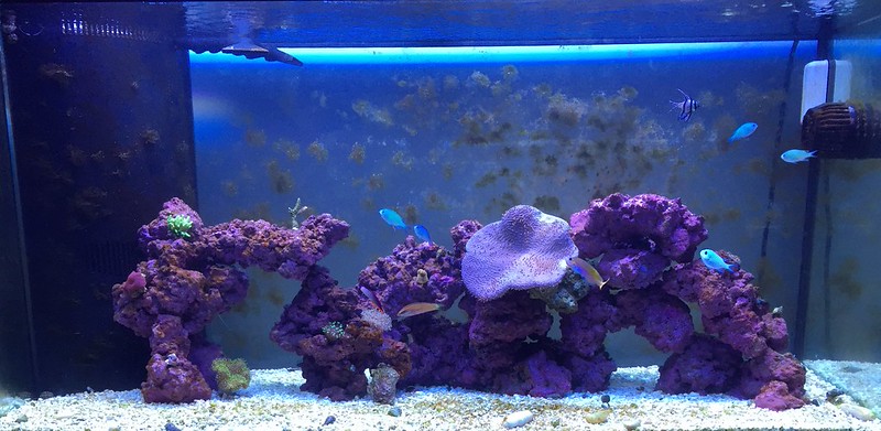 This is an upgrade from a 75 to 90 which I thought was going to give me a lot more room to do a cooler Aqua scape. I was hoping to do to big rock formations with a valley in the middle with a lot of swimming area"¦ once I started putting a rock into the tank I realize that really wasn't an option. But I am happy with the way it turned out hopefully it gives me a lot of room for corals to grow out.