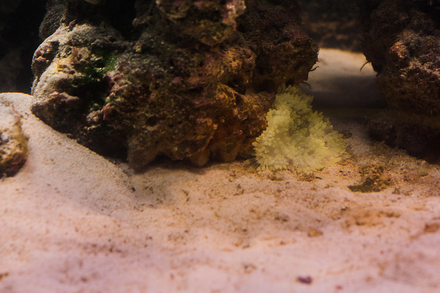 so about a month ago i picked up a sebae, and he's been hanging out in the sand bed, eating 2-3 times a week(hardest part is keeping the peppermints away until he completely swallows).