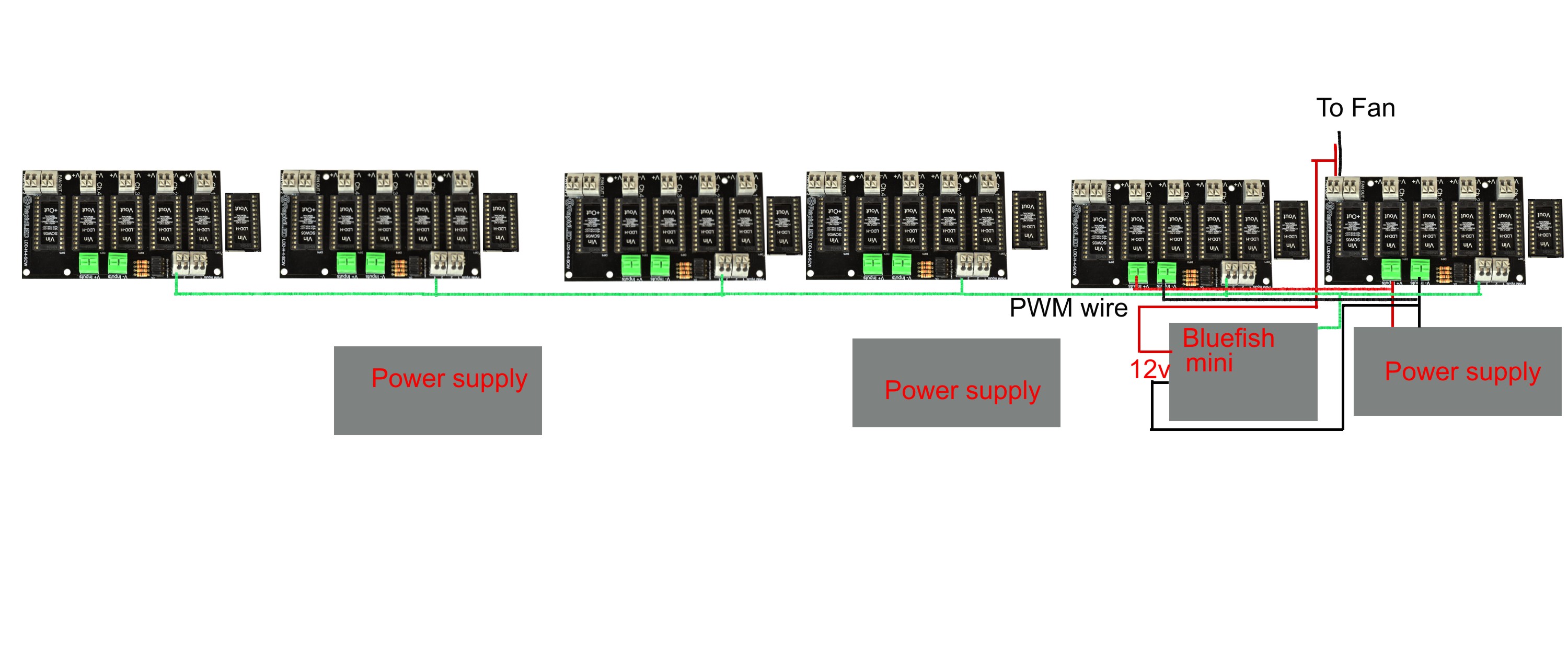 The manual for the bluefish gives the ribbon cable pinout... Its simply a matter of connecting the PWM and GND wires of each output channel to the dimming inputs on the LDD devices...