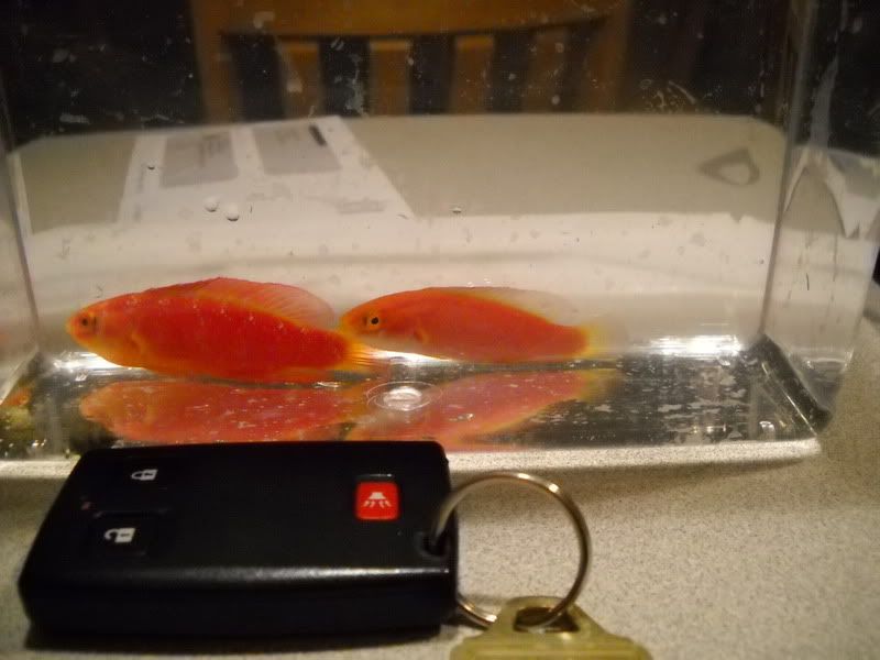 They look good! I just picked up two female pylei fairy wrasses last night and they are doing fairly good. They won't be fed until tomorrow when the lights come on.