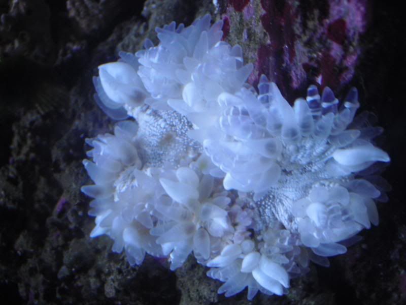 I've heard that an anemone that has an open mouth constantly could be a very unhealthy anemone. =( Reassure me its ok please? I bought this FLOWER anemone yesterday at the All Ohio C-SEA fragswap and it was in a fishbowl under a MH light with about 10 other anemones. They were all pastel like in color (some light green, lavender, green and white, etc.) and mine was all white, but did look healthy otherwise. I figured it was supposed to be white, compaired to the others it was with and how thier markings were. I brought it home and floated it for about twenty minutes while I dipped everything else I got. After that, I drip acclimated it for about an hour and then put it in the tank. It attached to me, took me a good five minutes to get it off, and then attached to the rock right away. It hasn't moved, and even accepted food yesterday. The open mouth thing started this morning and it's still like that.