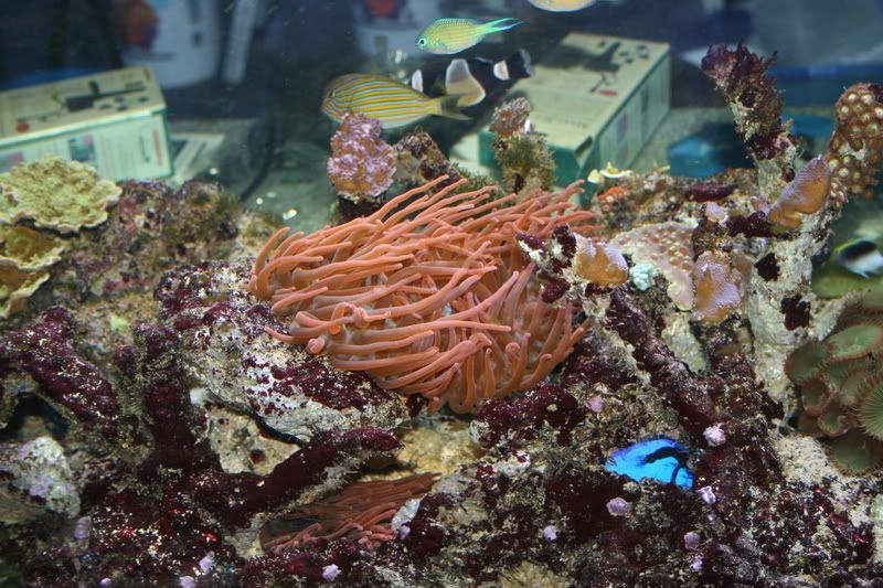 A couple weeks ago while I was in Ohio my Female from my other pair jumped out of the 210 gallon (http://www.reefcentral.com/forums/showthread.php?s=&threadid=955069&perpage=25&pagenumber=1). Lesson learned there, I need some egg crate over every one of my tanks. So, yes that means I will be in the market for some juvenile latz as soon as I get things squared away again. For the time being, I’ll have to simply be happy with having one as a pet. I also expect to loose a polymnus clown that’s been battling bi-lateral eye infections.