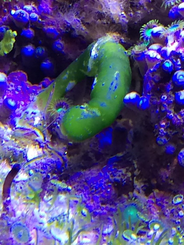 I was doing a water change on my Biocube last week and pulling out a bunch of unexpected caulerpa while I was at it. I saw a large green thing on the back of a rock and started to pull it off until it squirmed back from my fingers. Freaked me right out!